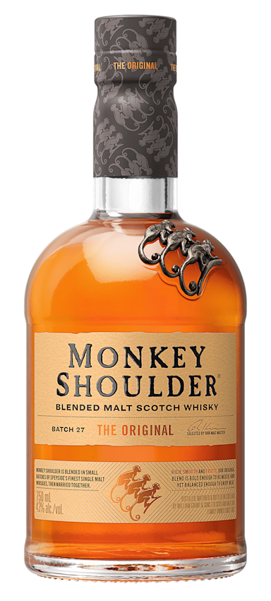 Monkey Shoulder a blend of the finest single malt whiskies. Selected in small batches and then married together to consistently achieve Monkey Shoulder’s signature flavor in every bottle.The product of a closely guarded recipe: a smooth blend of Speyside single malts that produces a complex array of delicious flavors. It contains 43% alcohol by volume (ABV) (86 Proof).The distillers found that three was their magic number, just enough to get their signature smooth and rich flavor from different malts while still being able to pick out individual flavor notes to pair.Matured in first-fill ex-Bourbon casks and blended in small batches for up to 6 months, then married to achieve a smoother, richer taste before bottling.